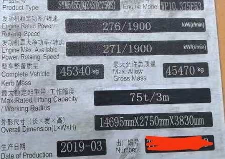 汽車吊 三一 75噸