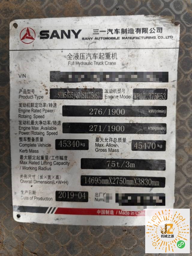 汽車吊 三一 75噸